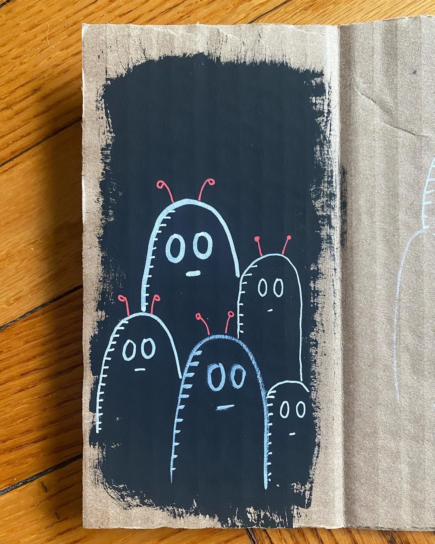 Testing out materials on cardboard.